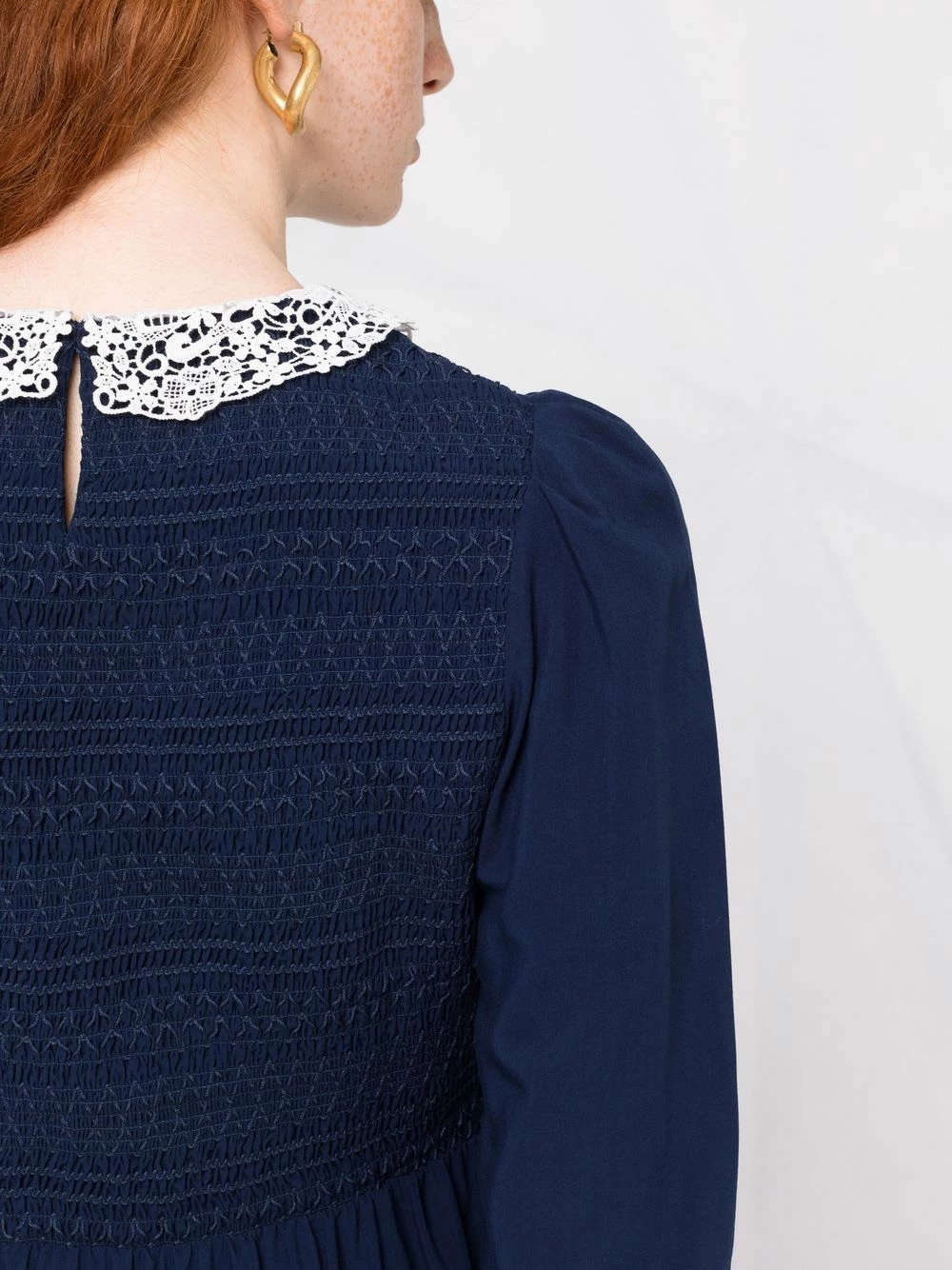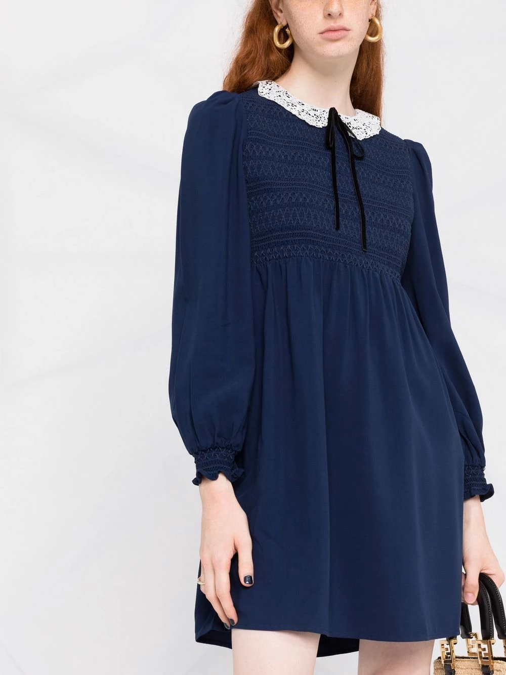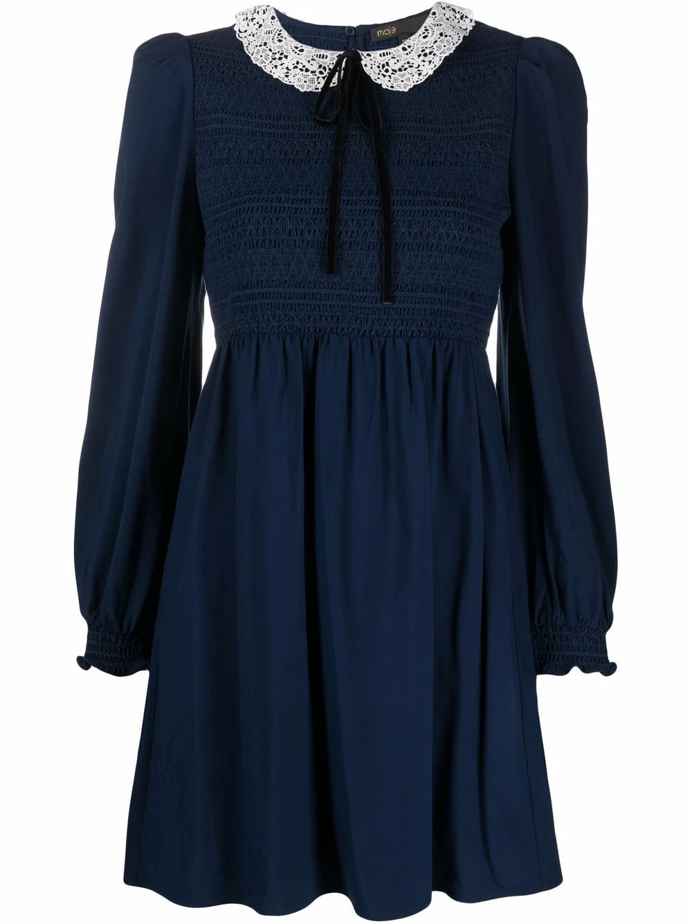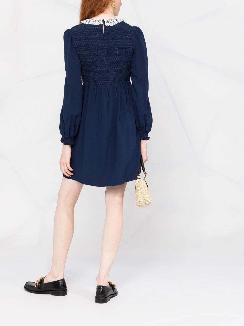 Navy cotton embroidered long-sleeve shift dress from Maje featuring embroidered design, round neck and long sleeves.