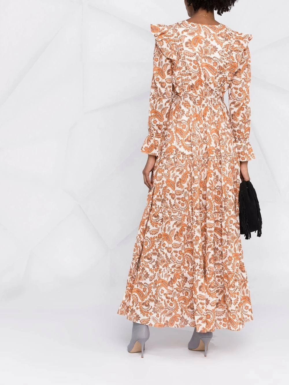 Maje presents an eye-catching look with this maxi dress. An all-over paisley print is presented in multicolour tones, enhanced by ruffled detailing.