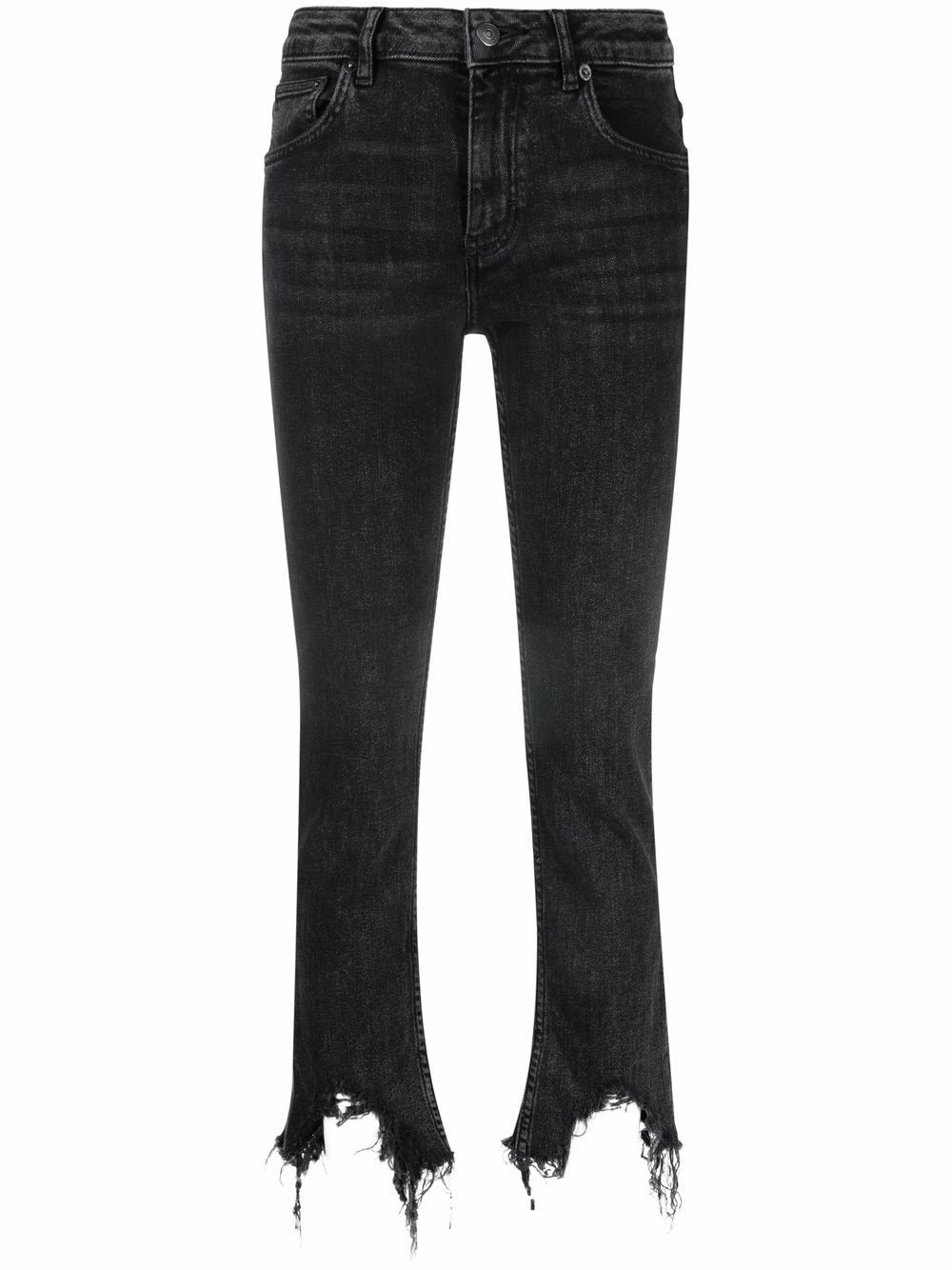 Crafted from stretch cotton in an anthracite grey hue, these straight-leg jeans from Maje are finished with a raw-cut hem.